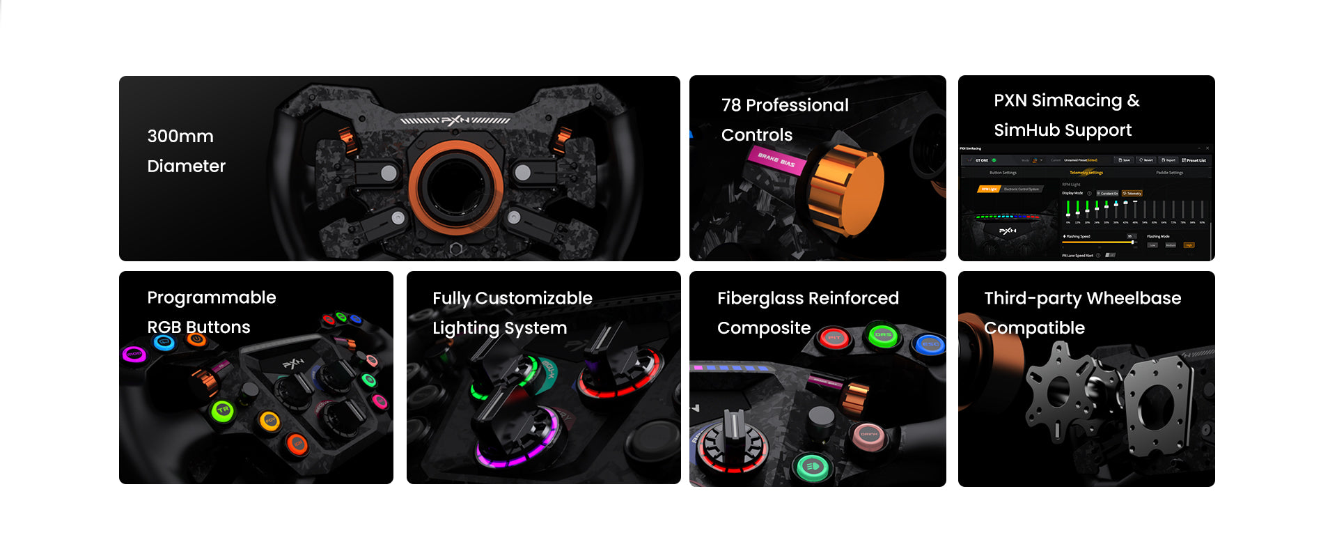 Yes. The GT ONE is fully compatible with PXN V12 Series wheelbases. You can directly connect it with the included Quick Release, then plug the standard USB Coiled Cable into your PC, and you’re ready to go with full functionality.