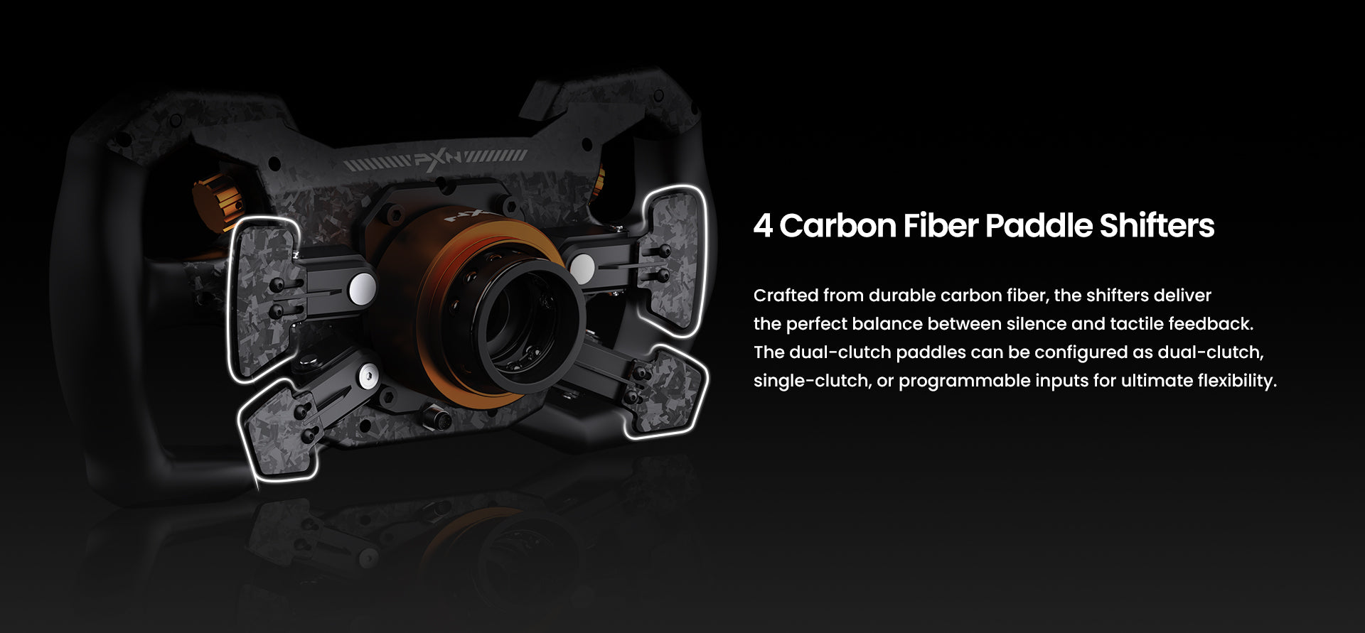 The dual clutch paddles support three switchable working modes: Combined Axis, Independent Axis, and Button mode, which can adapt to the clutch operation logic of different games and the personalized control habits of players.