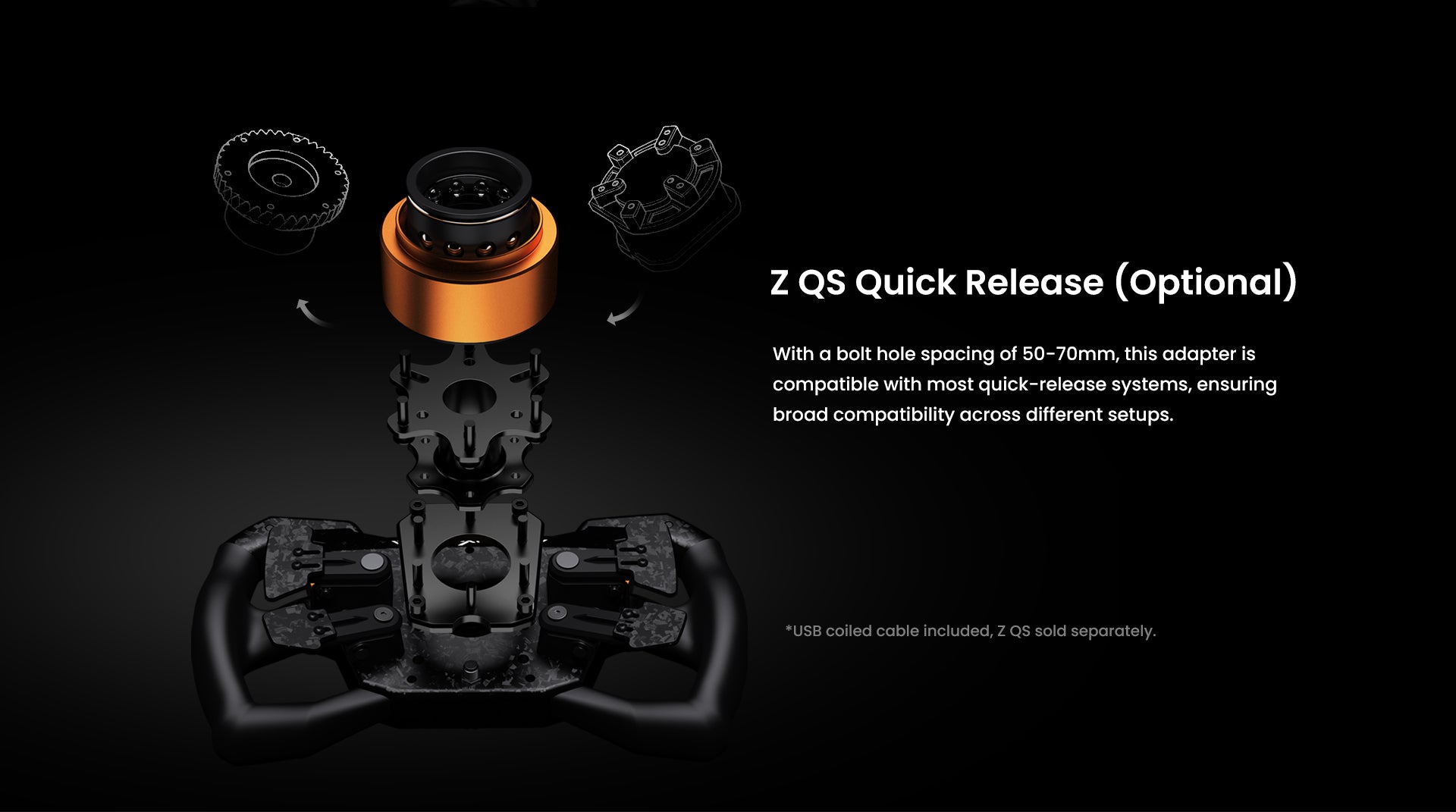 The GT ONE is fully compatible with PXN VD Series and V12 Series wheelbases, and reserves an expansion port for 3rd party wheelbases, supporting adaptation to third-party wheelbases. To use a 50-70mm quick release setup, the optional PXN Z QS Adapter is recommended.