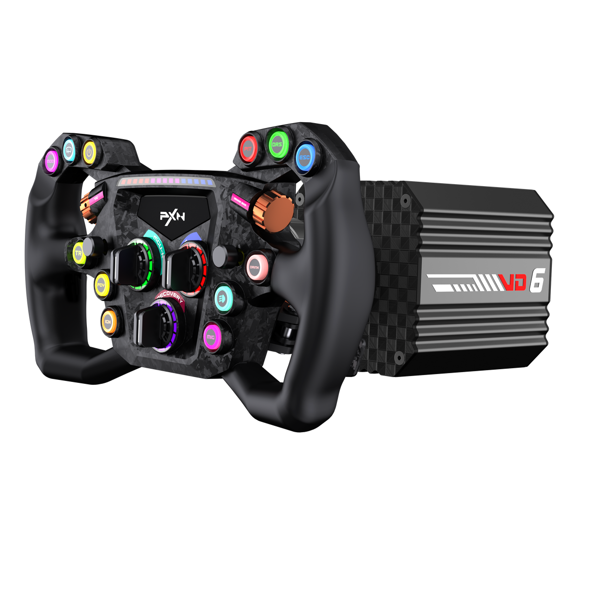 - It pairs the PXN VD6 Direct Drive Wheel Base, delivering 6 Nm sustained (7 Nm peak) torque via a 20-pole low-inertia motor with 24-bit magnetic encoding, proprietary PXN Sense+ force feedback optimization, and intelligent active cooling for consistent, lifelike steering response with the 300 mm PXN GT ONE Wheel.